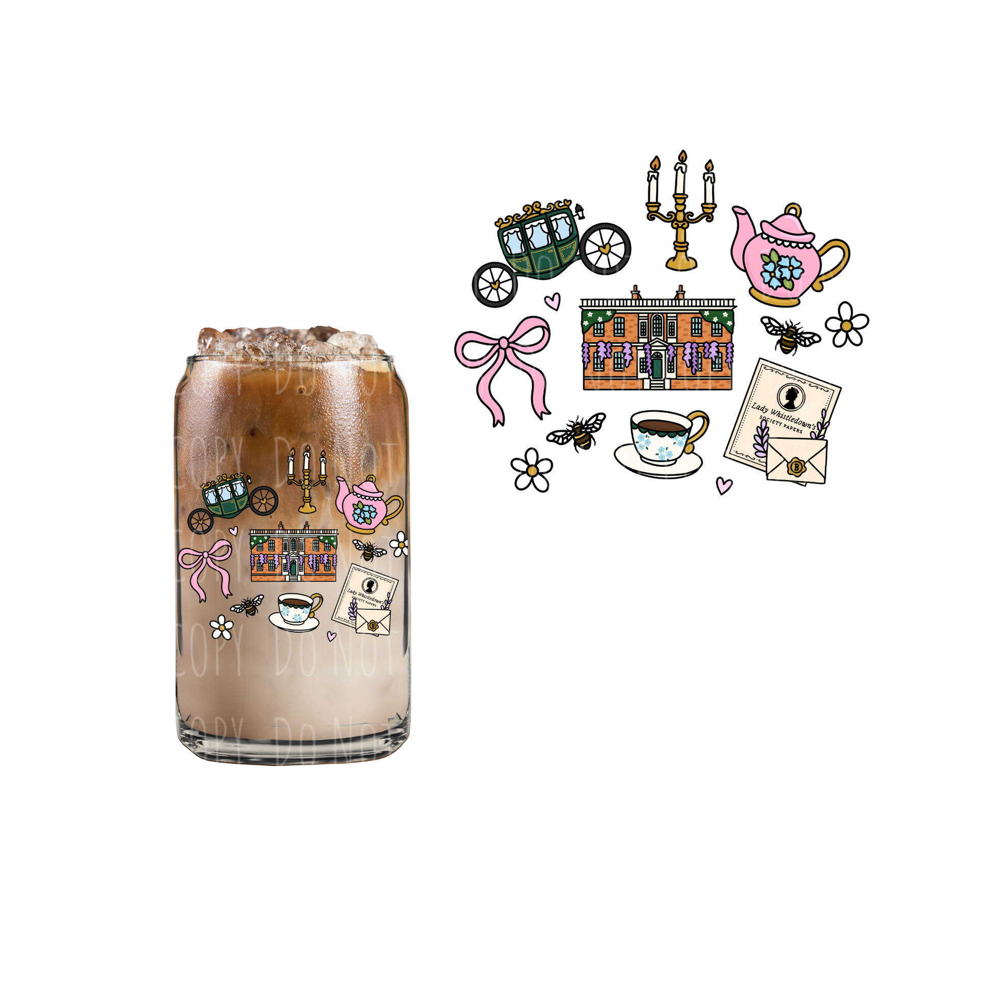 UVDTF Decals- 3.5-4 inches in height by proportion, fit nicely on both 16 and 20oz glasses.